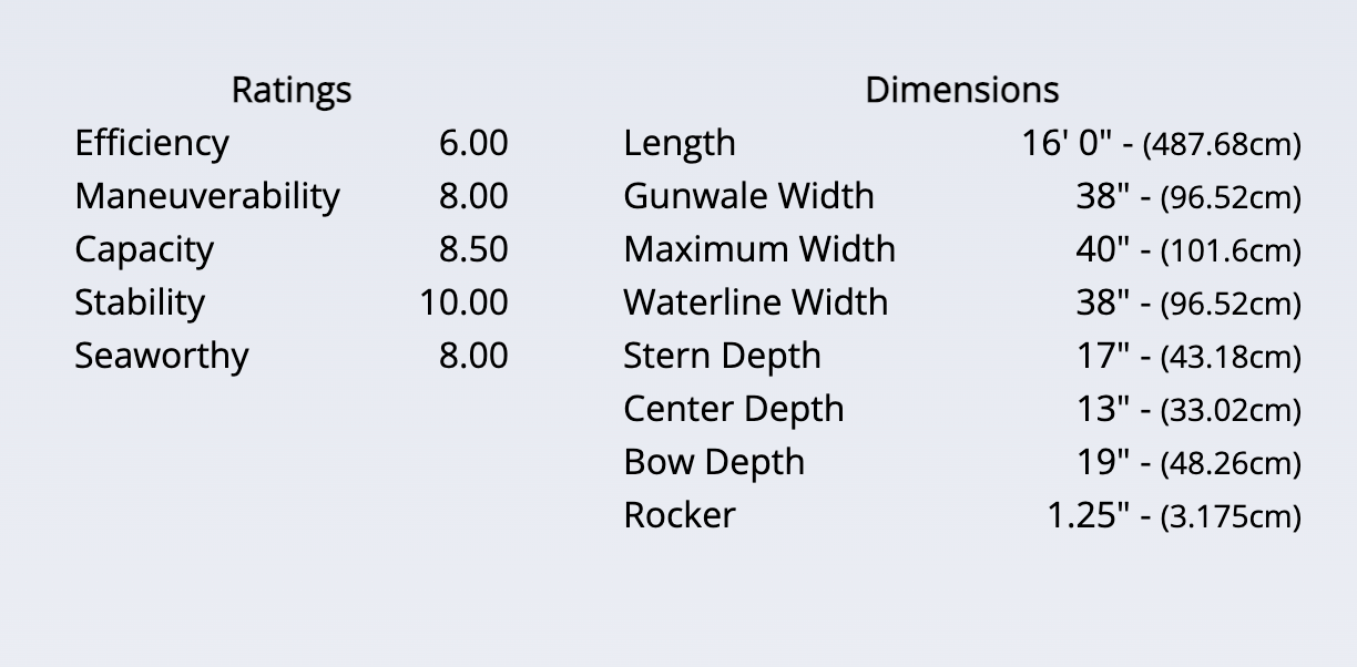 If your sporting plans call for a lot of gear, tackle, decoys, and a dog, the Kingfisher is your canoe. It's a great boat for catching sharks and snook in the no motor zones of the everglades or just taking the kids fishing for blue gills at the lake. This recreational hull extremely stable and very comfortable for larger paddlers. You can easily get in and out with your waders on and there's no need to worry about stability when shooting out of this canoe. It's two feet longer than the Fisherman and has more capacity, but at 16 feet it's still easy to maneuver.